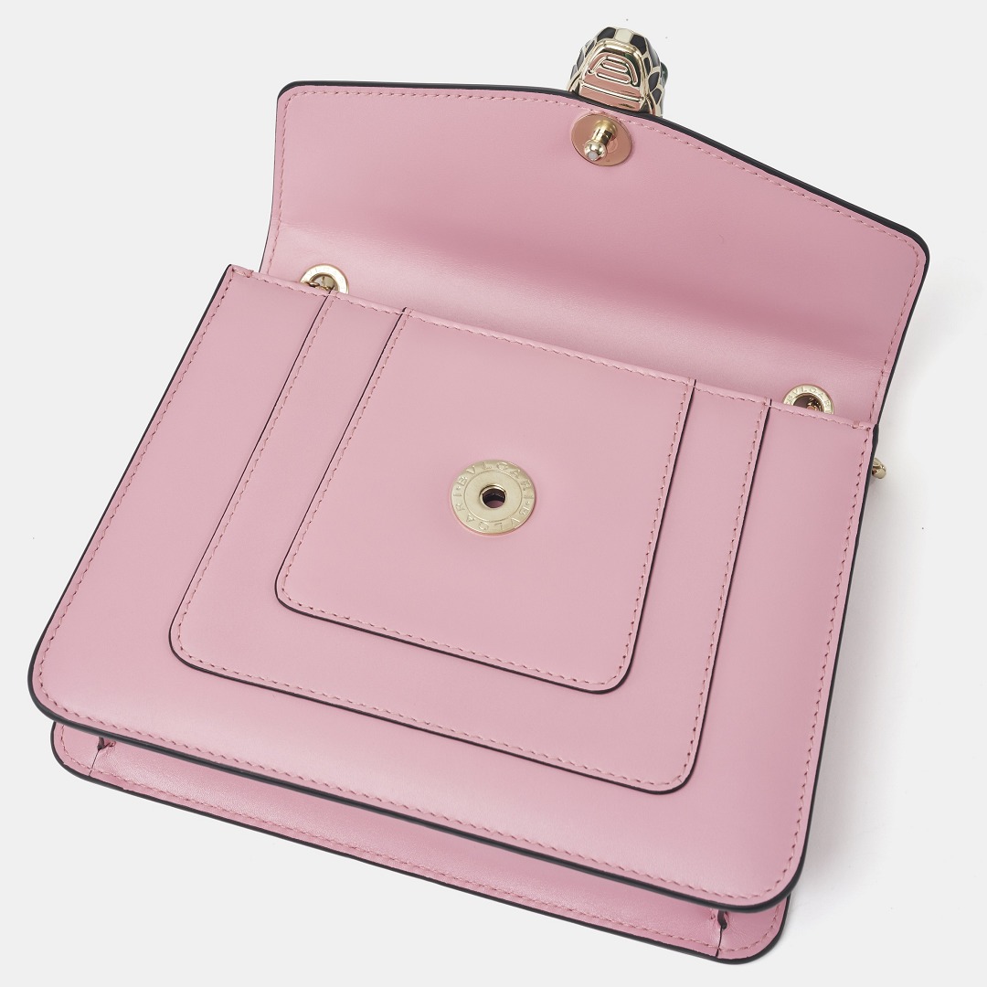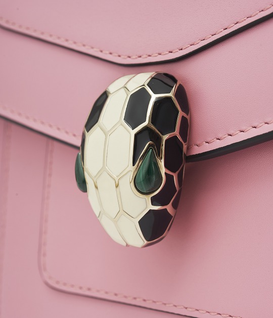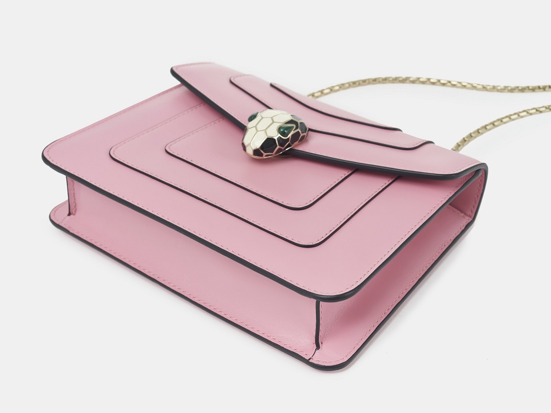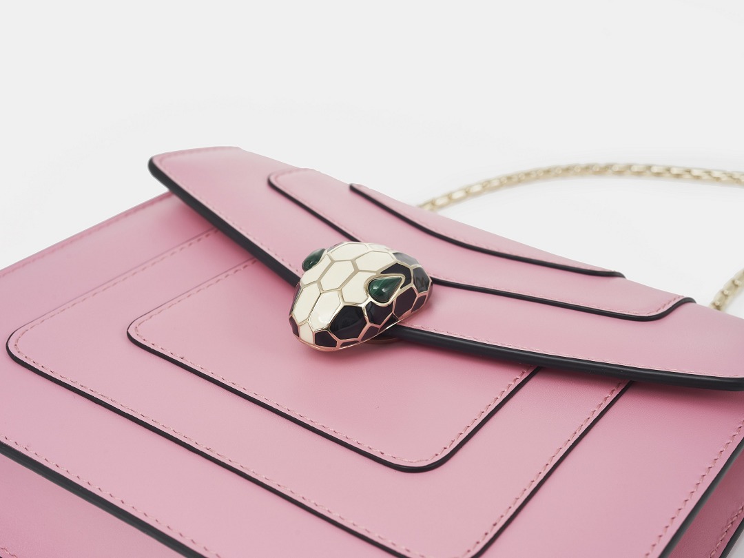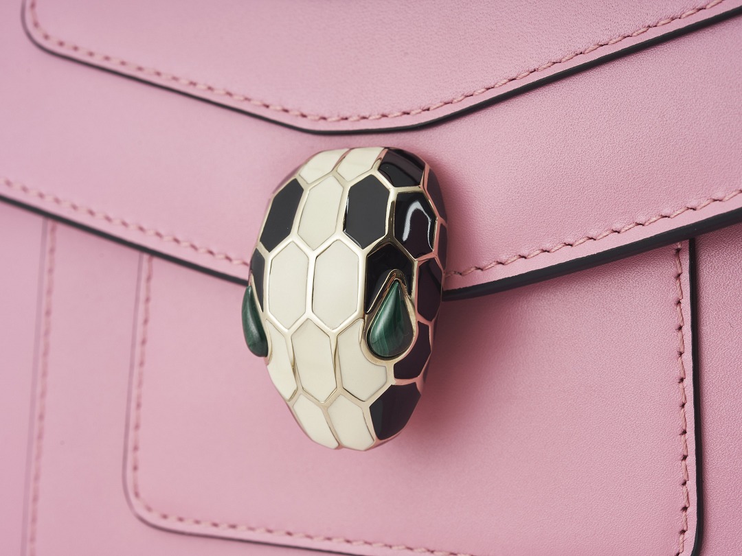 The snake head clasp on the Serpenti Forever handbag continues the exquisite craftsmanship of BVLGARI jewelry. It needs to go through multiple processes such as brass molding, electroplating, hand-painted colored enamel, and inlaid gem eyes . Its level of sophistication is almost comparable to that of jewelry.