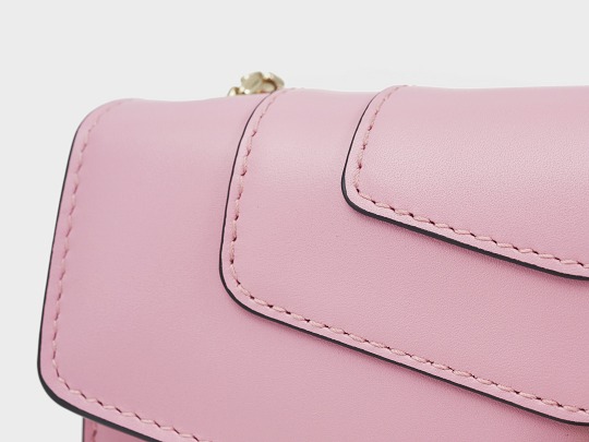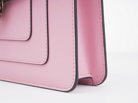 The bag is made of flamingo quartz pink calfskin , which is particularly fresh and gentle. The triangular cover design is still inspired by the lines of the snake's head, and naturally extends to the snake head buckle. The multi-layered seams and black oil edges highlight the three-dimensional and layered sense of the bag, making the overall shape of the bag not too monotonous, and also adding a bit of heroism to the all-pink bag.