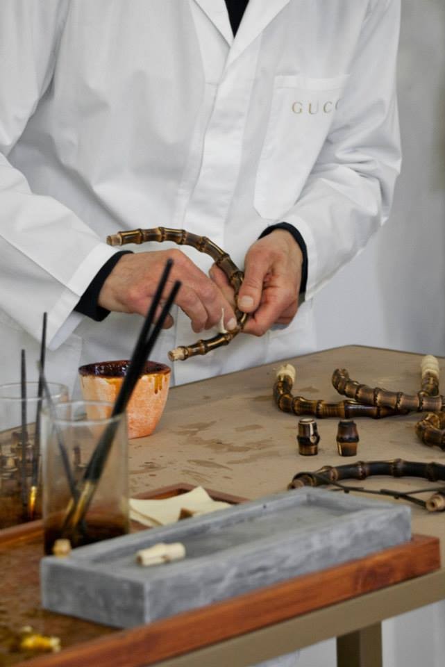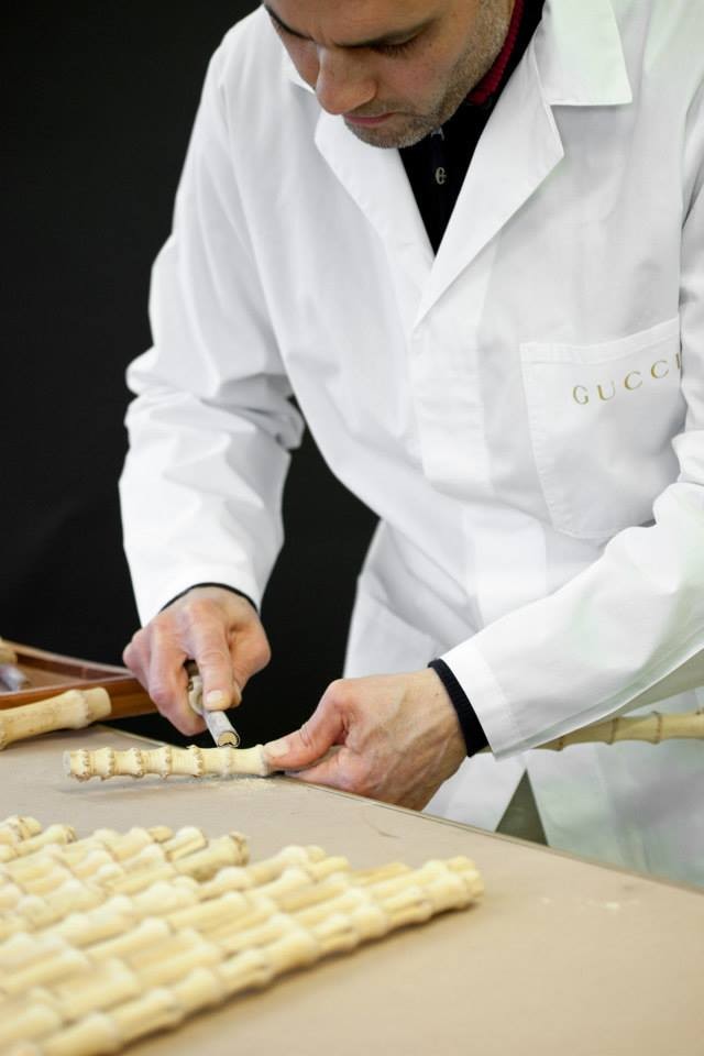 Each bamboo handbag is assembled from about 140 parts of various sizes . A series of processes including leather cutting, hand-polishing, shaping and modification, hand-painted oil edges, and hardware assembly are all done by hand by the bag craftsmen in the Florence workshop. Each bag takes more than 13 hours to make .
