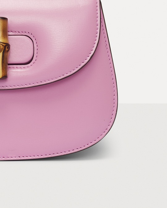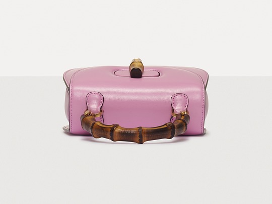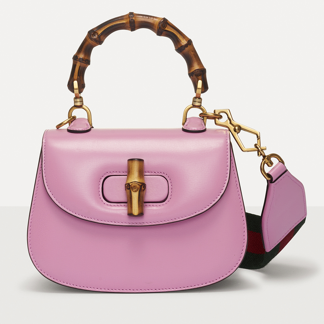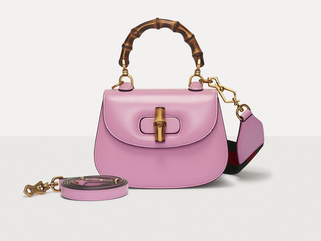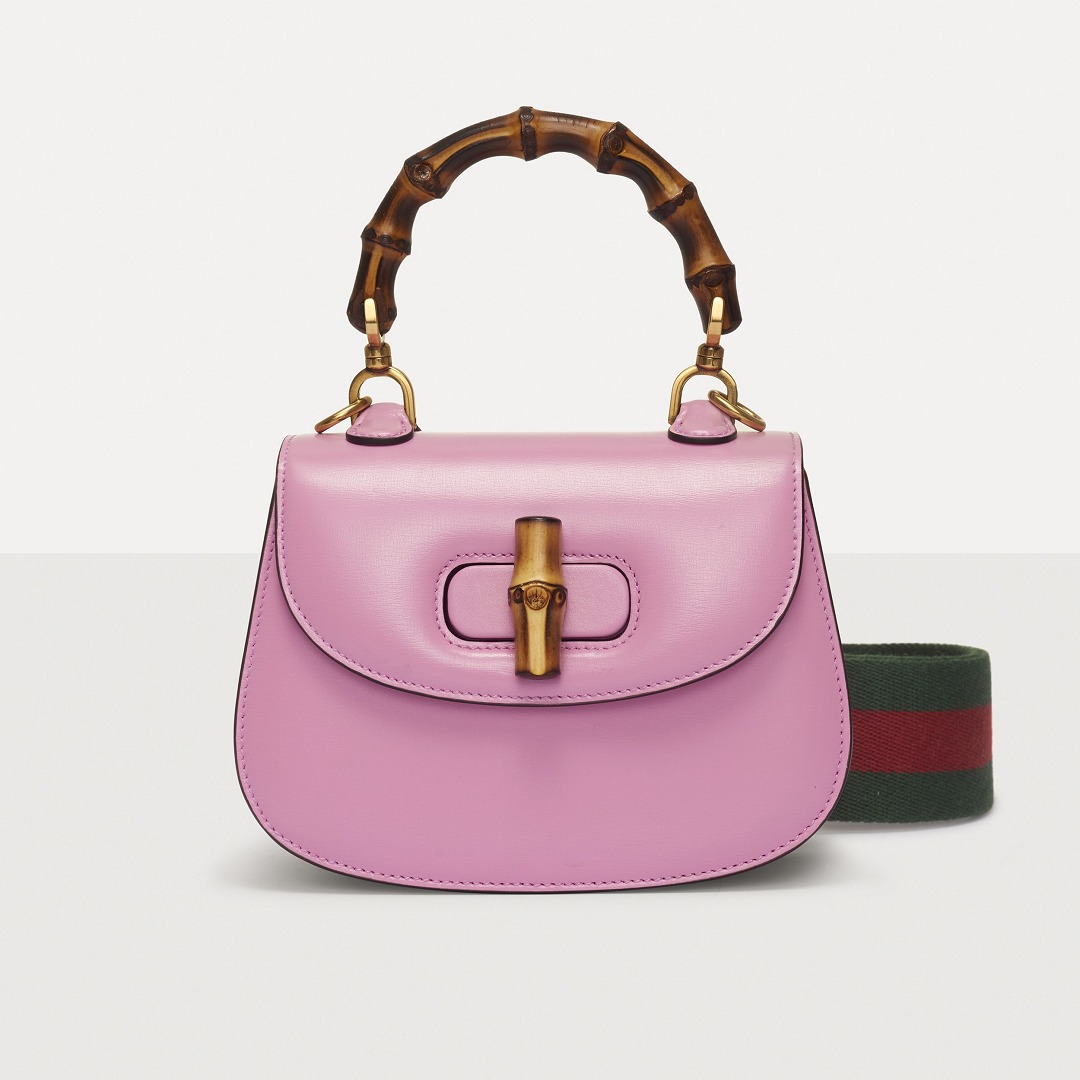 The first classic bag in Gucci's history , the Bamboo 1947 bamboo bag , makes a strong comeback in the fall and winter of 2021, continuing the bamboo handle and rounded saddle bag design. This season, it debuts in a new mini size and candy color scheme , and adds two interchangeable and detachable shoulder straps, reshaping the classic silhouette in a contemporary style.