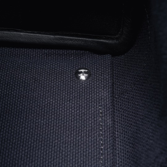 The bag uses black Swift calfskin to sew the edges and details, which not only serves as a reinforcement, but also makes the line structure of the bag tougher and clearer. The bottom is equipped with leather edging and metal feet to keep the bag upright and protect the bottom of the bag from wear.