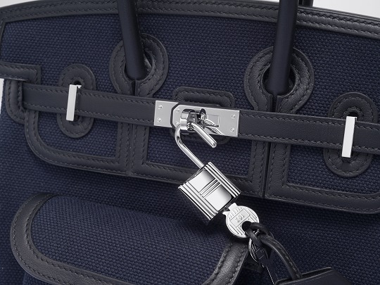 The shiny metal clasp and padlock are the iconic elements of Hermès leather goods. After rotating the clasp, pass the straps on both sides to open the bag cover. The whole process is very ceremonial.