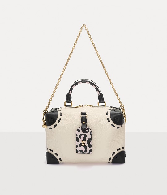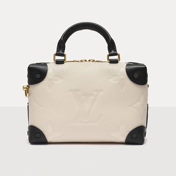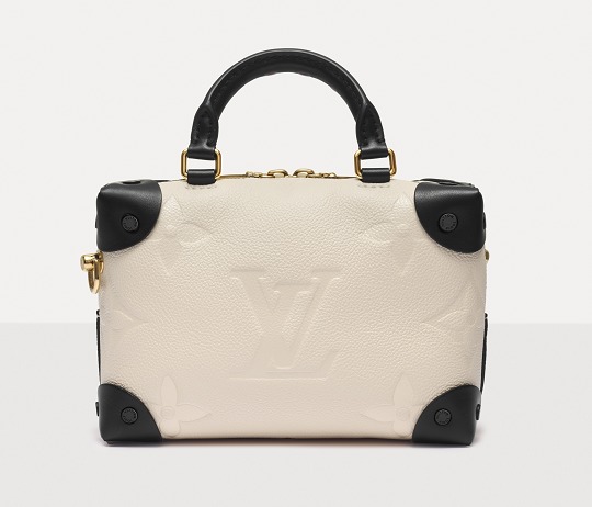 Petite Malle Souple Soft BagThis bag is crafted from creamy white grained cowhide leather that's reminiscent of vanilla ice cream. The Monogram pattern is embossed with a slightly embossed texture.