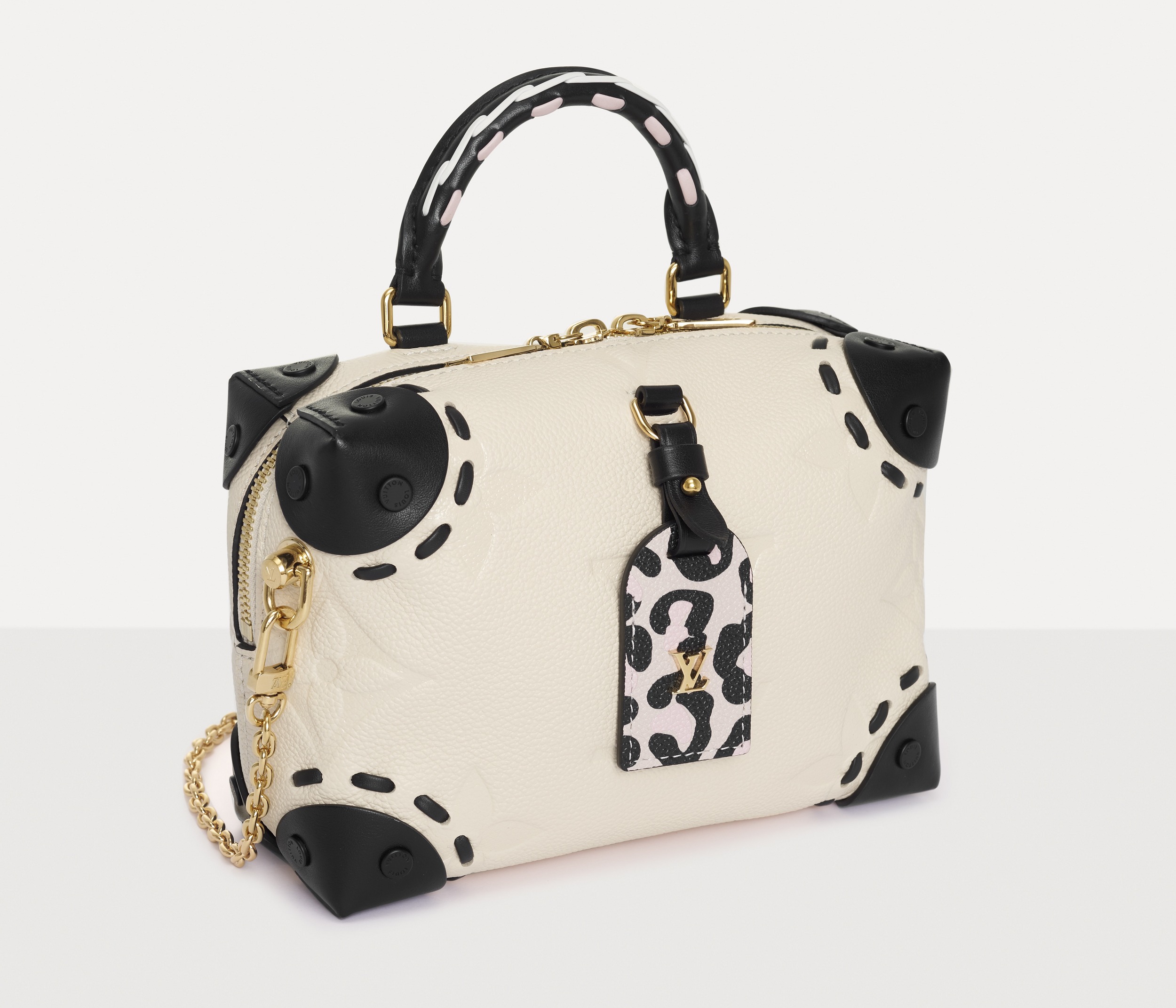 Petite Malle Souple is fresh and cute, with a pink leopard print on the leather tag hanging in the center . It not only exudes the sexy temperament of the leopard print itself, but also adds a sweet girlish touch with the pink tone.