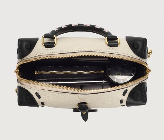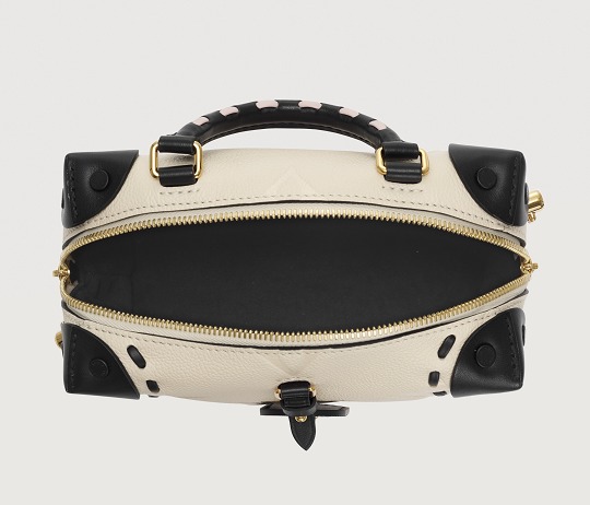 Petite Malle Souple continues the traditional box-making process with elements such as corner wrapping and rivets , and makes variations on the hard case - the softened cubic appearance is friendly, the complex locks are replaced with zipper closures , and are decorated with handles and chains , making it more casual and practical.