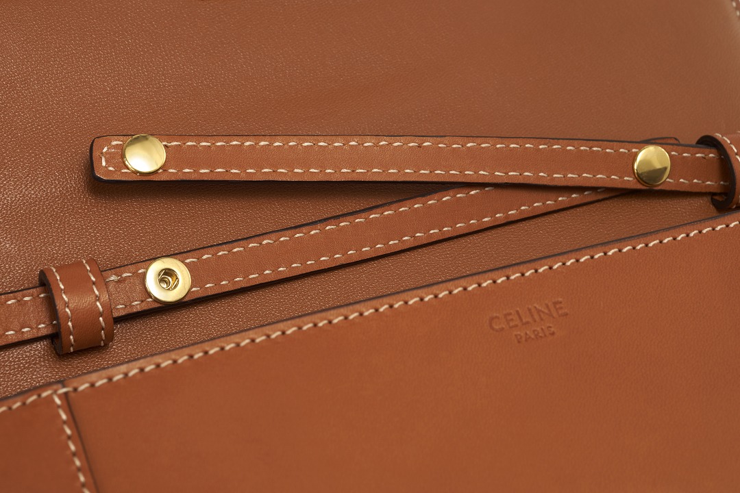 The leather used for the bag is also very exquisite. The outer layer is stiff cowhide to ensure that the bag shape will not be deformed. The lining is lambskin, which feels softer and more delicate , and plays a buffering and protective role. The CELINE and MADE IN ITALY logos are embossed inside and outside the bag mouth.
