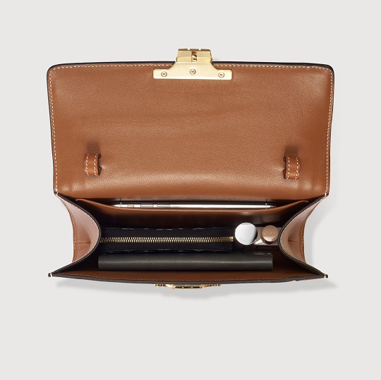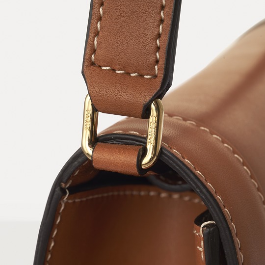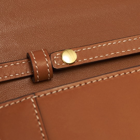 The bag comes with a detachable, adjustable brown calfskin shoulder strap , which can be used as a crossbody bag or shoulder bag to free your hands, and can also be used as a clutch after the shoulder strap is removed. The snaps thatconnect the shoulder strap are hidden on the inside of the bag cover and are fixed by two leather loops to ensure that the shoulder strap will not slip back and forth.