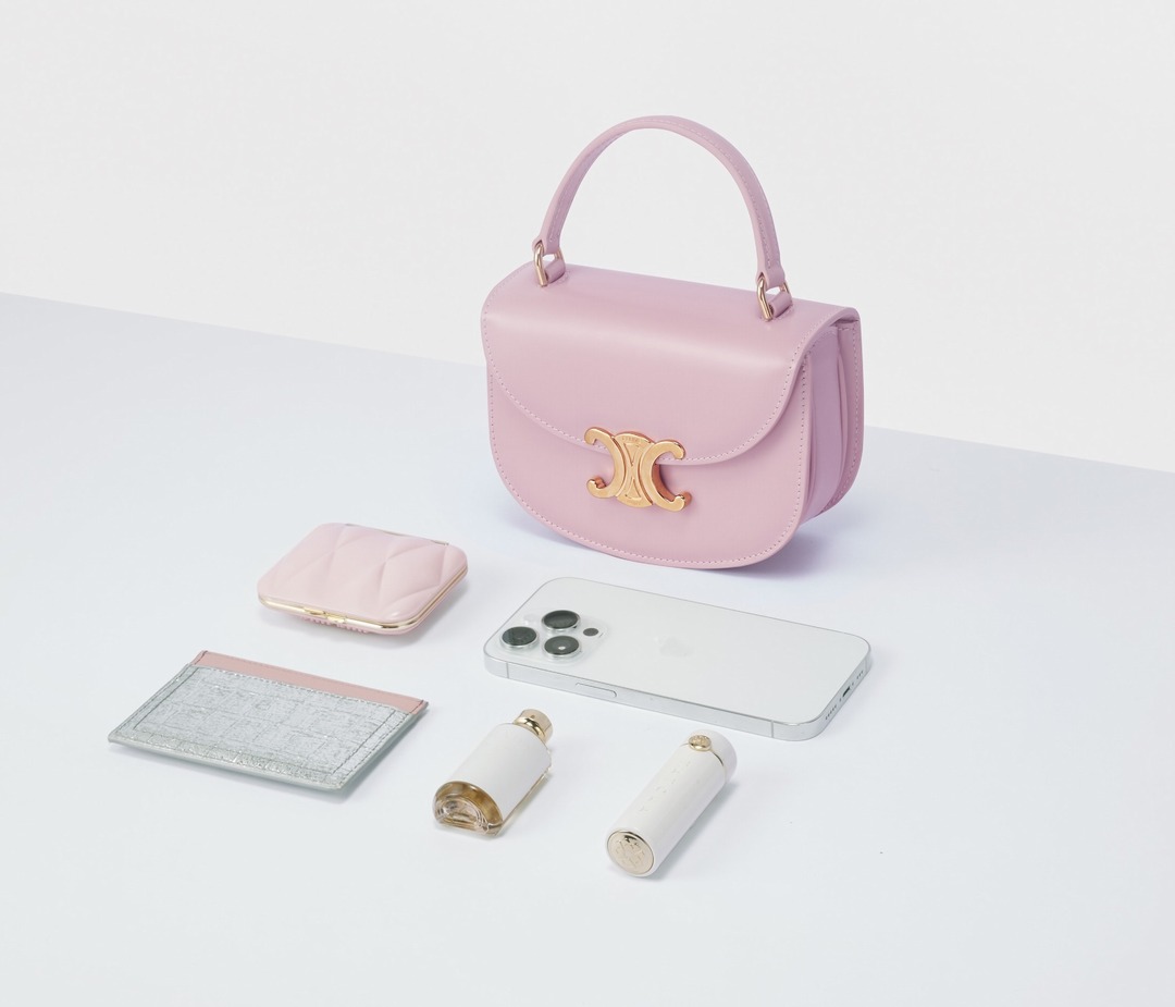 Although Besace Triomphe is mini in size, its three-dimensional silhouette greatly increases its capacity. We put small items such as a portable mirror, perfume, lipstick, etc. in it. It is light and practical for daily travel. Anyway, nowadays everyone keeps their mobile phones in their hands when they go out, so the bag just needs to look good.