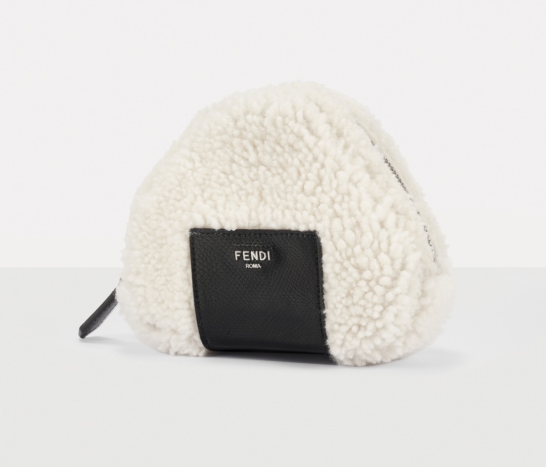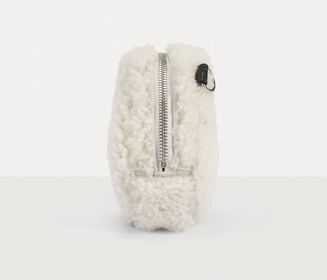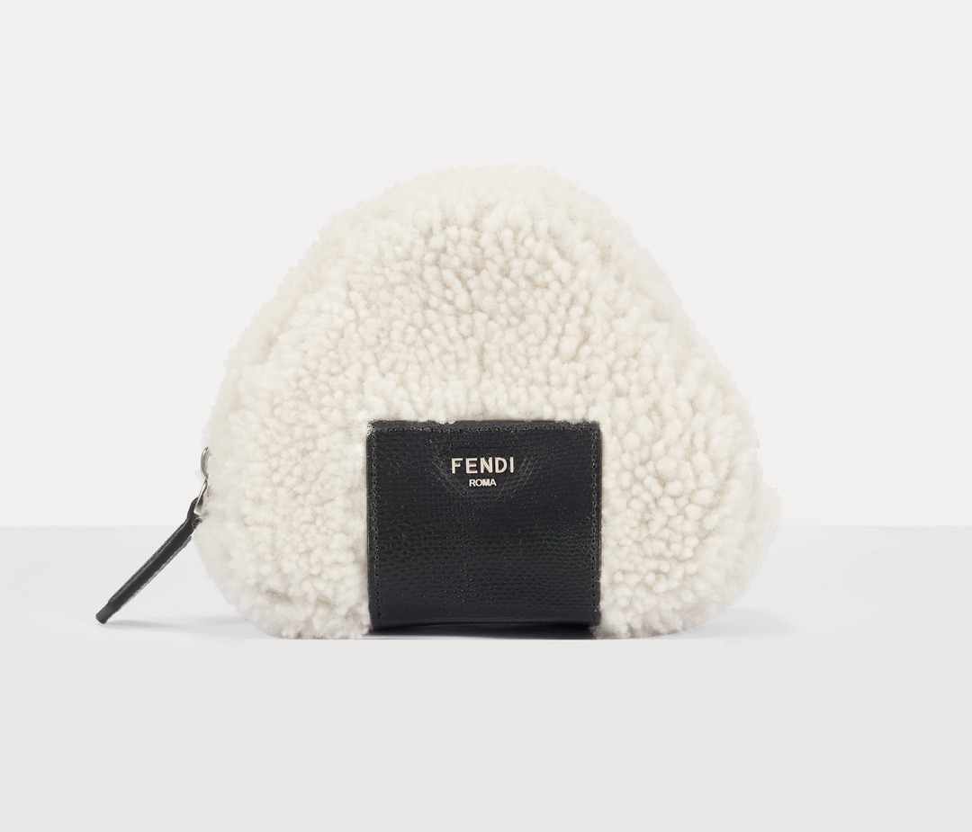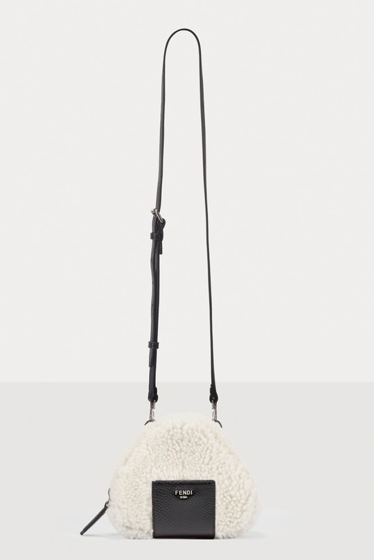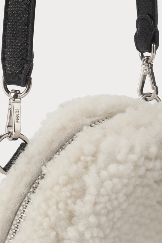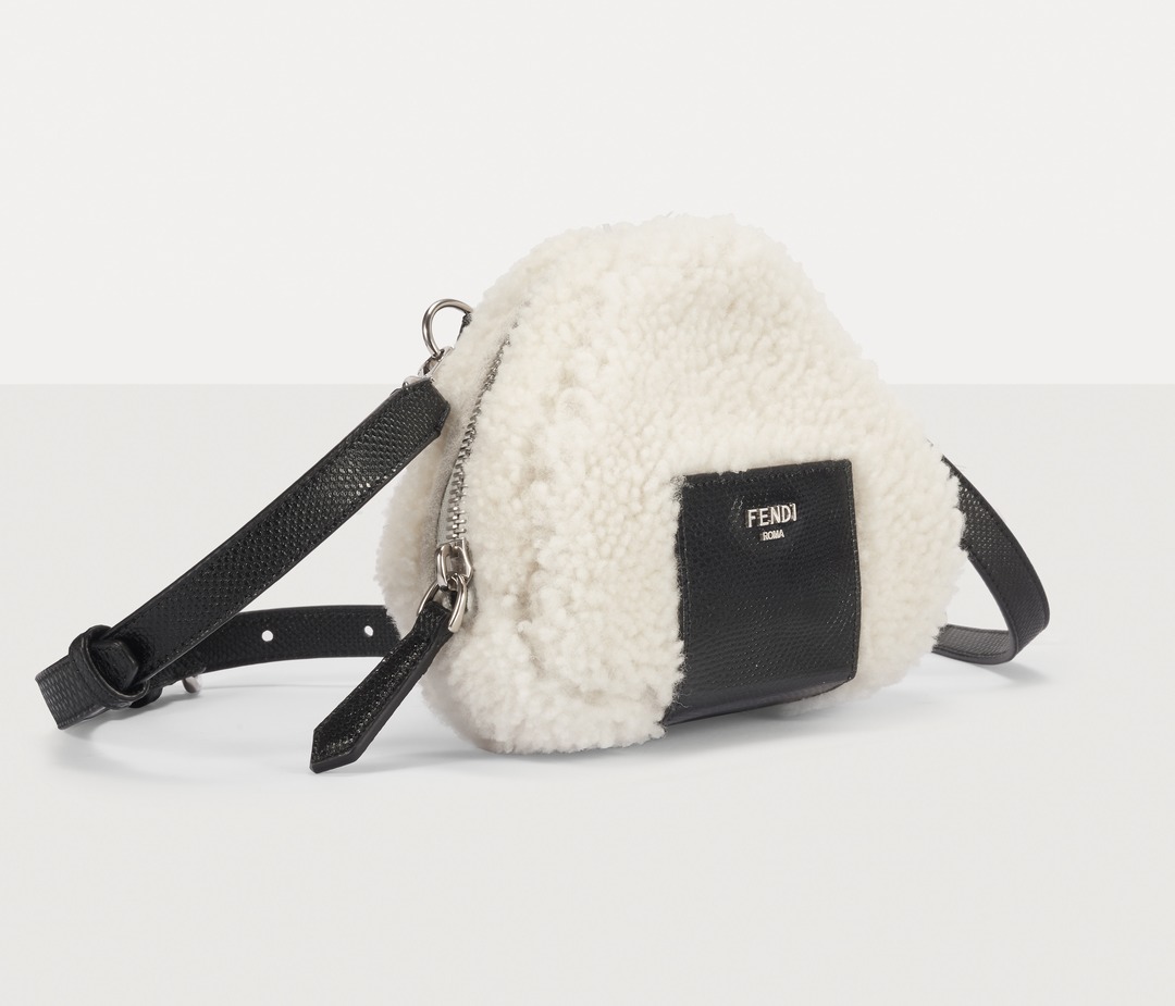 FENDI white sheepskin rice ball bag