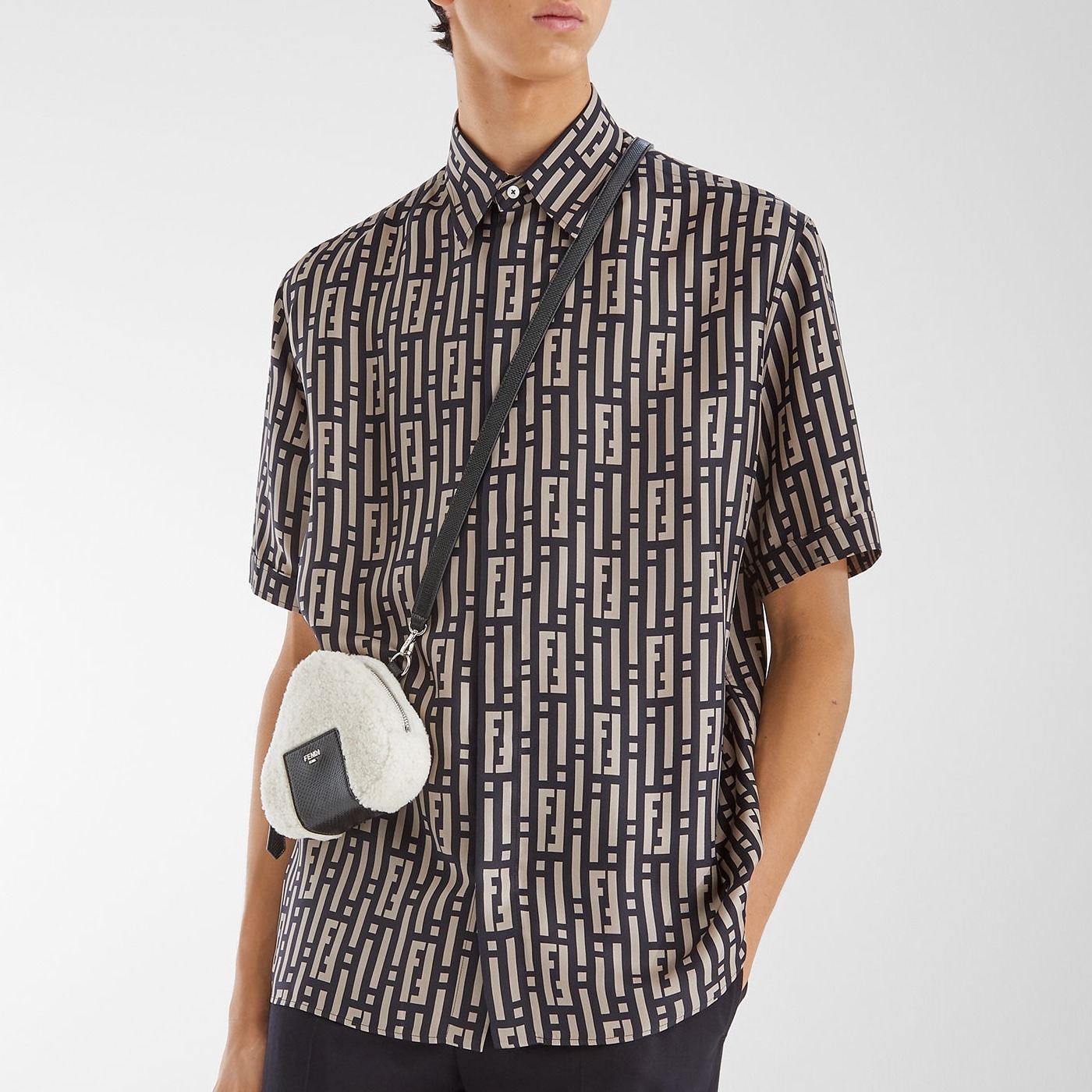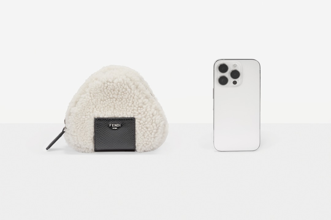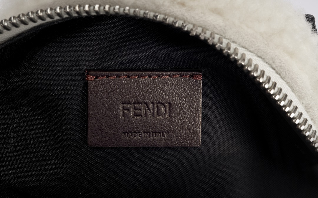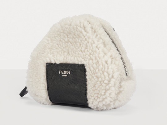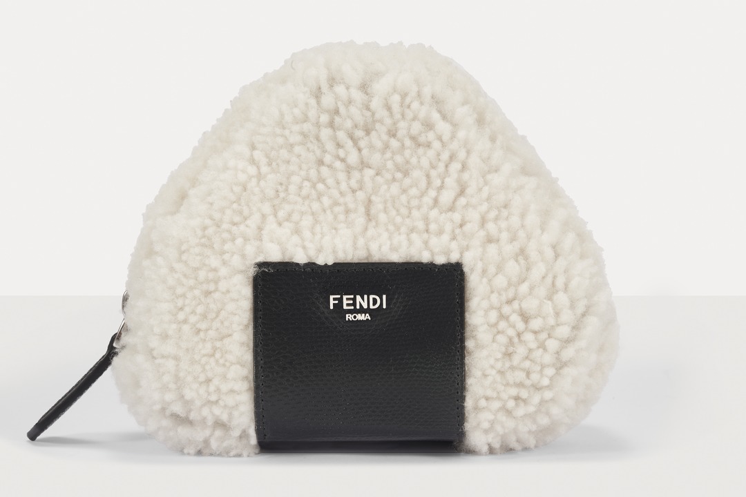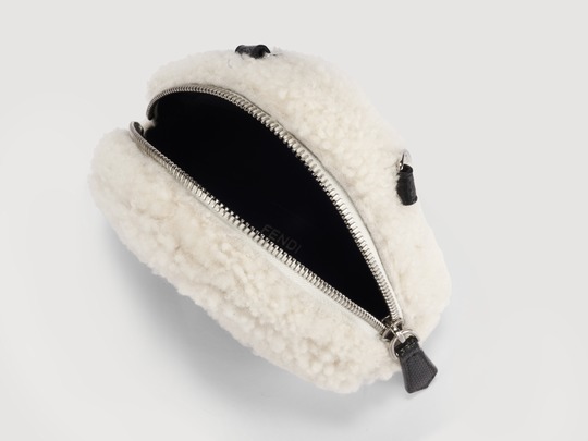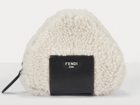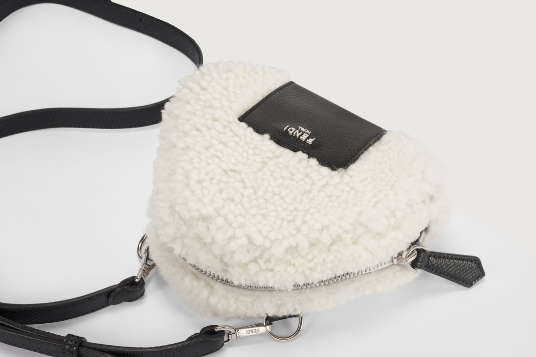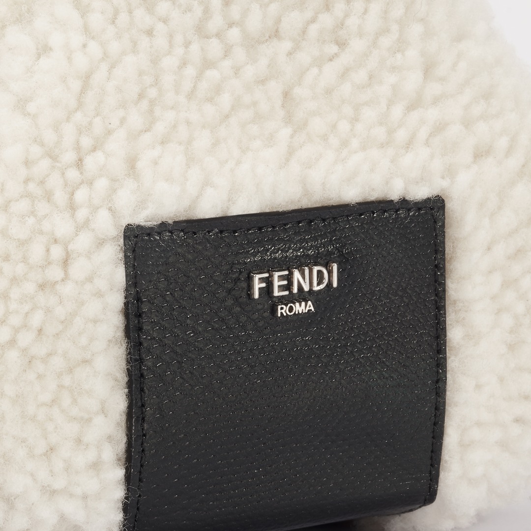 FENDI white sheepskin rice ball bag